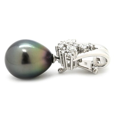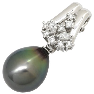 タサキ TASAKI ペンダントトップ パール 11.4mm ダイヤ グレー×プラチナシルバー プラチナ ネックレストップ 1粒 しずく型 【中古】