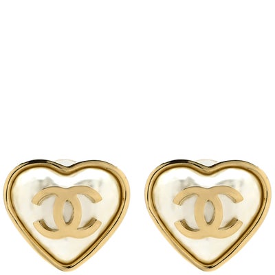 シャネル CHANEL イヤリング ココマーク ハートモチーフ GP フェイクパール ホワイト×ゴールド CCマーク クリップ B22C 【箱】 【中古】