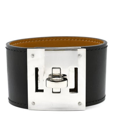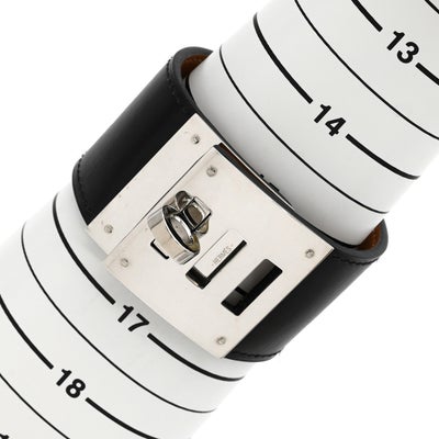 エルメス HERMES ブレスレット ケリードッグ レザー メタル ブラック×シルバー バングル 黒 SV金具 T 【保存袋】 【中古】