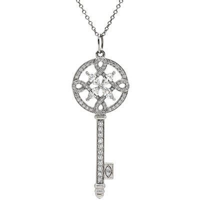 ティファニー Tiffany & Co ネックレス ビクトリア ラウンドキー ダイヤ ペンダント プラチナシルバー プラチナ 900 750WG 鍵モチーフ 【箱】 【中古】
