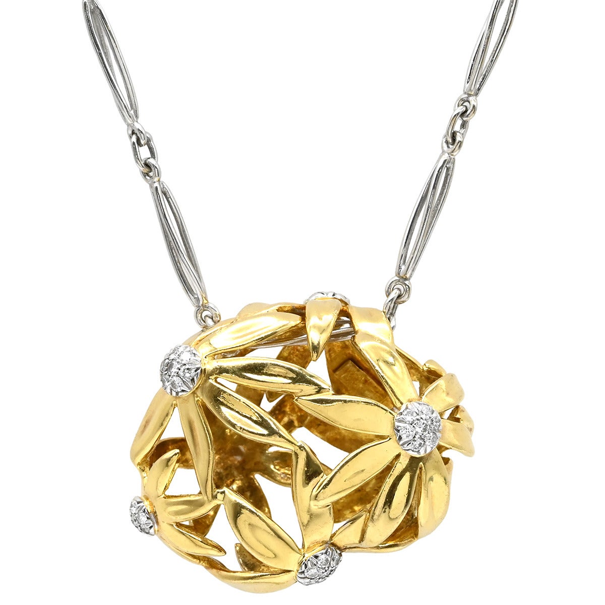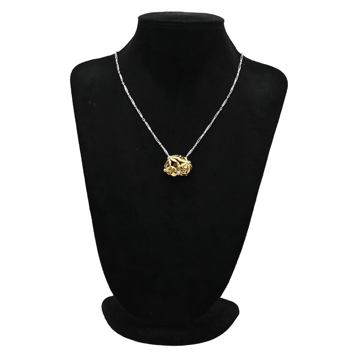 他の画像を見る ガラヴェリ GARAVELLI ネックレス かご フラワー ペンダント イエローゴールド×ホワイトゴールド 750 18金 WG YG 花 立体 透かし模様 【中古】 GARAVELLIネックレス 当店価格: ¥ 595,840 税込 中古 カートに入れる
