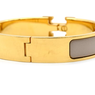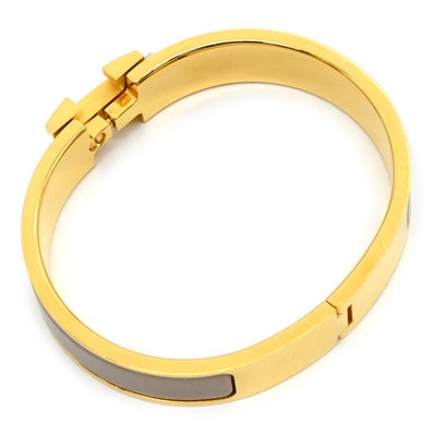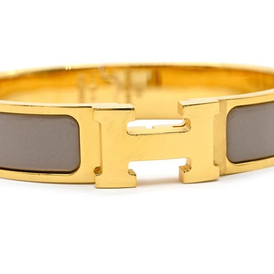 エルメス HERMES ブレスレット クリックH PM GP エナメル グレージュ×ゴールド ゴールド金具 Hブレス クリッククラック 【中古】