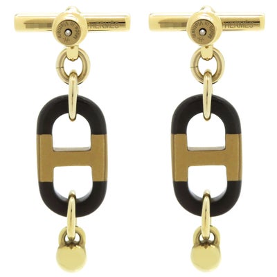 エルメス HERMES ピアス シュル メールPM GP バッファローホーン ベージュ×ブラック×ゴールド ゴールド金具 【箱】 【中古】