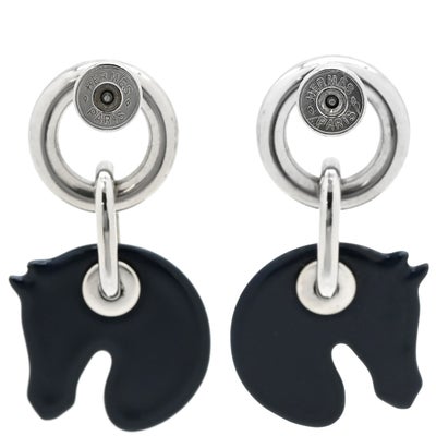 エルメス HERMES ピアス タッタソール エナメル メタル ネイビーXホワイト 馬柄 【箱】 【中古】