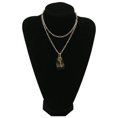 エルメス HERMES ネックレス アミュレット パドロック GM バッファローホーン GP ブラックXゴールド カデナ・鍵モチーフ 【中古】