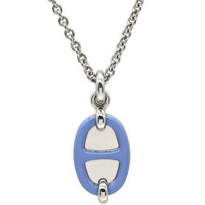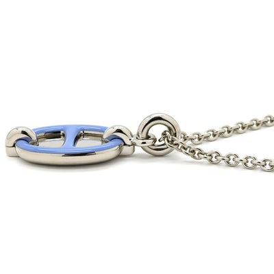 エルメス HERMES ネックレス ミニマイヨン ペンダント メタル エナメル ブルーXシルバー シェーヌダンクルモチーフ SV金具 【中古】