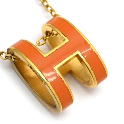 エルメス HERMES ネックレス ポップアッシュ ペンダント GP ラッカー オレンジXゴールド 橙 Hモチーフ POP H GD金具 【中古】