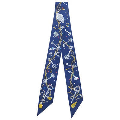エルメス HERMES スカーフ ツイリー シルク マリン×グリスアルジョン 【LES CLES A POIS/レ クレ ア ポア】 【箱】 【中古】
