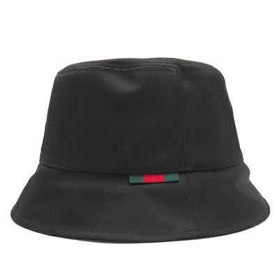 グッチ GUCCI ハット ロゴ付き ナイロン バケットハット ナイロン ブラック L 黒 813534 【保存袋】 【中古】