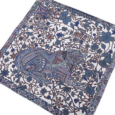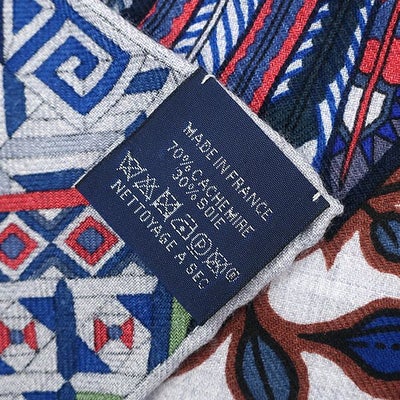エルメス HERMES ストール カレ140 カレジェアン カシミヤ シルク グリス×ブルー×アカジュ― 新品 未使用 【LE JAGUAR ET LE COLIB/ジャガーとハチドリのデザイン】 【箱】 【中古】