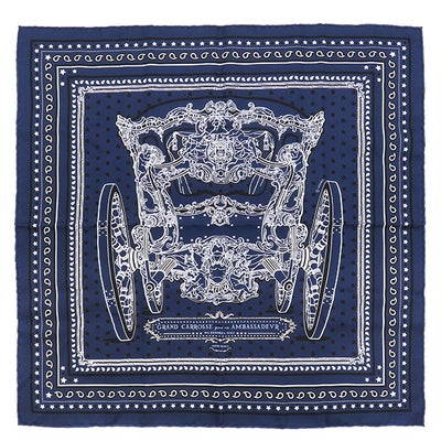 エルメス HERMES スカーフ カレ55 CARRE シルク ネイビー 【Grand Carrosse pour vn Ambassadeur/大使の偉大な運送】 【箱】 【中古】