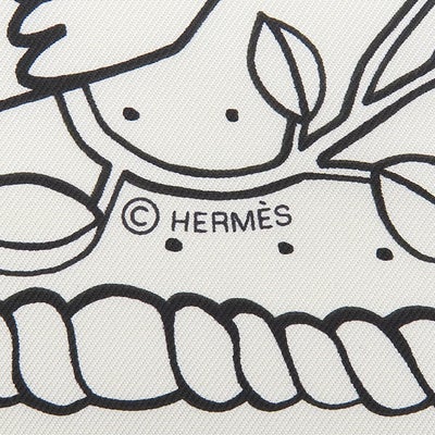 エルメス HERMES スカーフ カレ55 CARRE シルク ホワイト×ブラック 新品 未使用【ANIMAUX BANDANA/アニマル バンダナ】 【箱】 【中古】