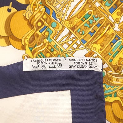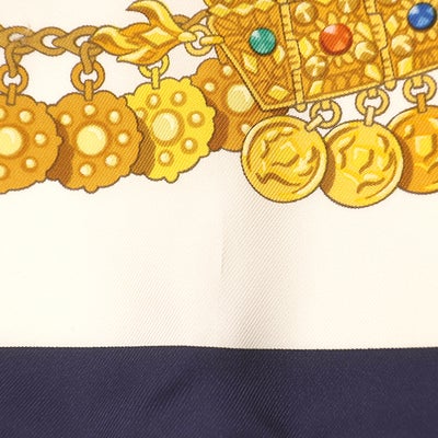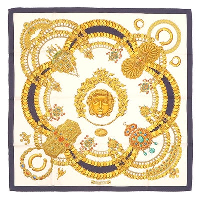エルメス HERMES スカーフ カレ90 CARRE シルク ホワイト×ブルー×ゴールド 【 KOSMIMA/コスミマ 】 【箱】 【中古】