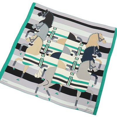 エルメス HERMES ストール カレ140 カレジェアン カシミヤ シルク ミント×グリ×ブラック 【ROCABAR /ロカバール】 2018AW 【中古】