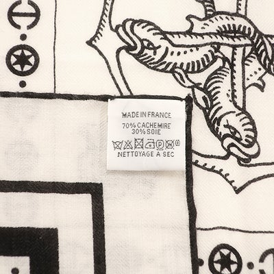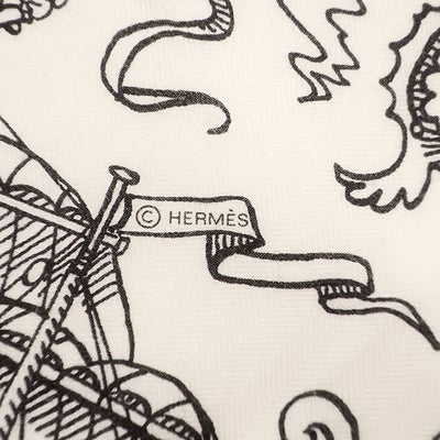 エルメス HERMES ストール ショール カレ140 CARRE カシミヤ シルク ホワイト×ブラック 【TATOUAGES MARINS/船乗りのタトゥー バンダナ】 【箱】 【中古】