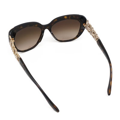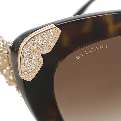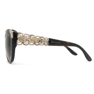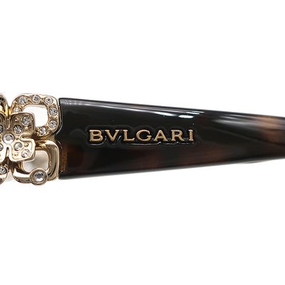 ブルガリ BVLGARI サングラス キャッツアイ 55□17 プラスチック メタル ラインストーン ブラウン ゴールド金具 マーブル柄 フラワーモチーフ 8162-B-F 【中古】