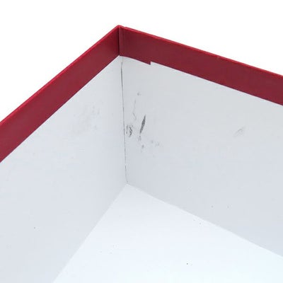 展示保管による表面に線スレ、試し履きによるヒビ割れ有。 ※箱に汚れ有