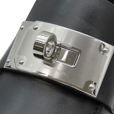 エルメス HERMES ローファー モカシン ホット レザー ゴム ブルーブルーエ×マリン #36 シルバー金具 黒 ケリーバックル H232075Z 02360 【箱】 【中古】