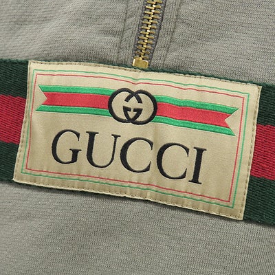 グッチ GUCCI パーカー ハーフジップ スウェット コットン カーキ M ゴールド金具 ウェブストライプ トレーナー フーディー 長袖 644656 【中古】