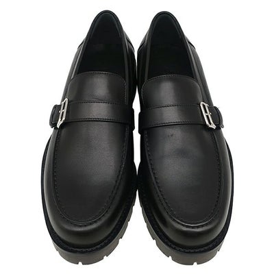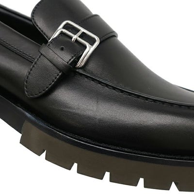 エルメス HERMES ローファー シングル モンクストラップ モカシン レザー ブラック #40.5 シルバー金具 黒 ビジネスシューズ ドレスシューズ ソルド品 【保存袋】 【中古】