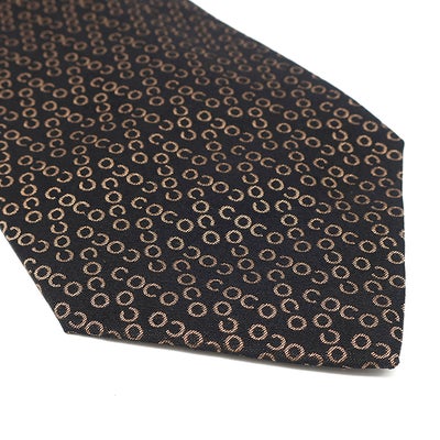 シャネル CHANEL ネクタイ CO柄 9.5cm シルク ブラック×ゴールド 黒 アルファベット 【中古】