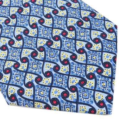 エルメス HERMES ネクタイ クラバット 9cm シルク ブルー×マルチカラー 青 赤 黄色 総柄 幾何学柄 【中古】