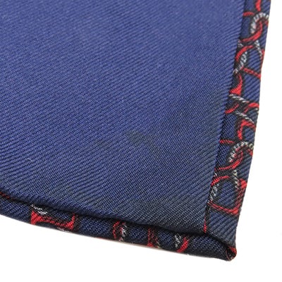エルメス HERMES ネクタイ 総柄 8cm シルク ネイビー×レッド シェーヌダンクル 【中古】