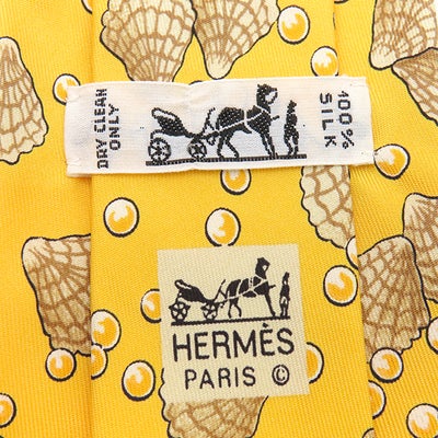 エルメス HERMES ネクタイ クラバット 9cm シルク イエロー 貝柄 貝殻 真珠 【中古】