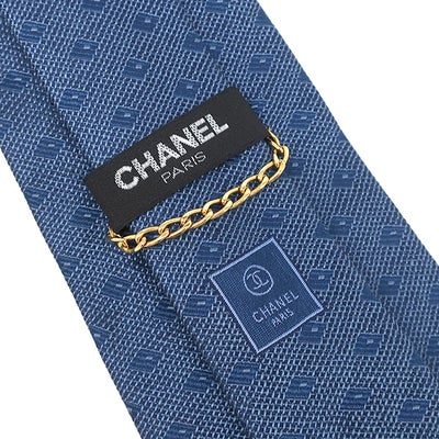 シャネル CHANEL ネクタイ 総柄 10cm シルク ブルー 青 【中古】