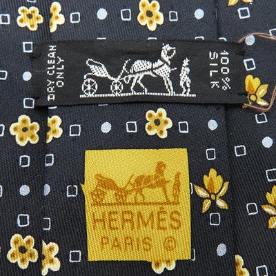 エルメス HERMES ネクタイ 総柄 9cm シルク ブラック 花柄 ドット 【中古】