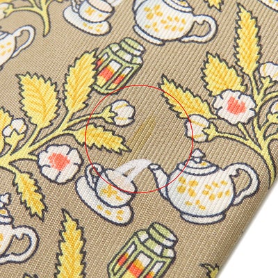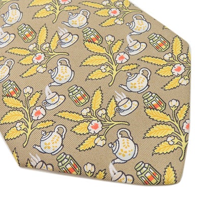 エルメス HERMES ネクタイ クラバット 9cm シルク ベージュ×マルチカラー 植物柄 ティーポット 【中古】