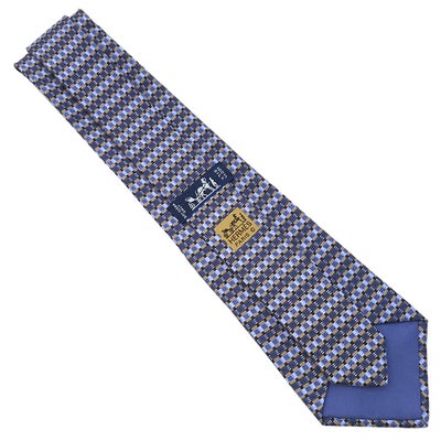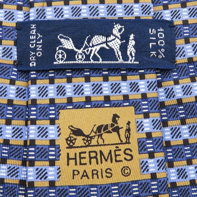 エルメス HERMES ネクタイ 総柄 9cm シルク ブルー系 変形 ストライプ 青 水色 ゴールド 【中古】