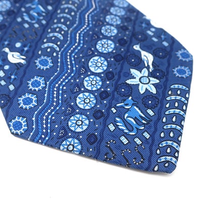 エルメス HERMES ネクタイ 総柄 9cm シルク ブルー 青 【中古】