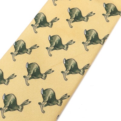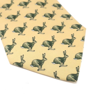 エルメス HERMES ネクタイ アニマル柄 8.5cm シルク イエロー×グリーン 黄色 カンガルー 【中古】