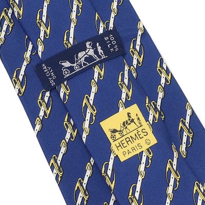 エルメス HERMES ネクタイ 馬具 9cm シルク ネイビー×マルチカラー 紺 ベルト 式典用馬勒 【中古】