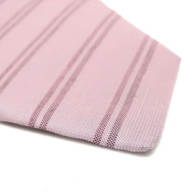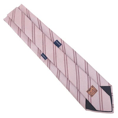 エルメス HERMES ネクタイ シルクタイ 9cm シルク 絹 60% 麻 40% ローズ×マリン ストライプ 【箱】 【中古】