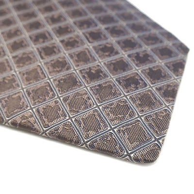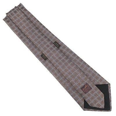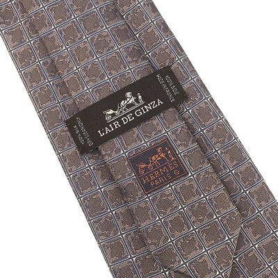 エルメス HERMES ネクタイ シルクタイ 銀座店限定 9cm シルク ブラウン L'AIR DE GINZA グリッド 【箱】 【中古】