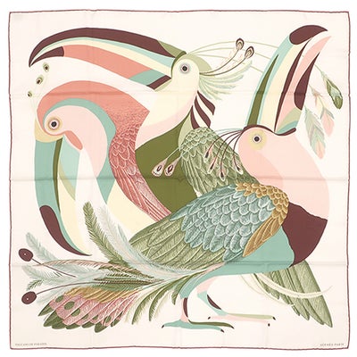 エルメス HERMES スカーフ カレ90 CARRE シルク ホワイト×ブランカッセ×ヴューローズ 【楽園のオオハシ】 【中古】