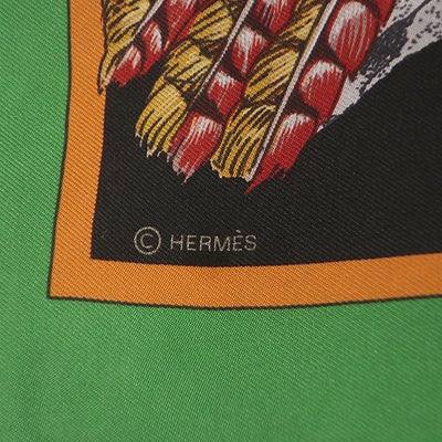エルメス HERMES スカーフ カレ90 CARRE シルク ブラック×グリーン 【PANI LA SHAR PAWNEE/パウニー族の首長】 H071721S 【中古】
