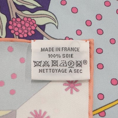 エルメス HERMES スカーフ カレ90 CARRE シルク バイオレット×ブルークラシエ×ジョーヌ 【 LE PREMIER CHANT /始まりの歌 】 【中古】