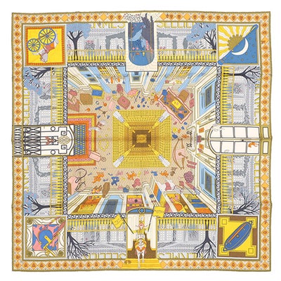 エルメス HERMES スカーフ カレ90 CARRE シルク オレンジ×ローズ×ブルー 【OBJETS DE CURIOSITE/オブジェ ドゥ キュリオジテ】 【中古】