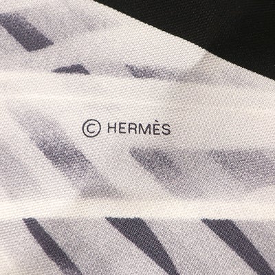 エルメス HERMES スカーフ カレ90 シルク ネイビー×ブラック×ホワイト 【PLEASE CHECK-IN/プリーズチェックイン】 【中古】