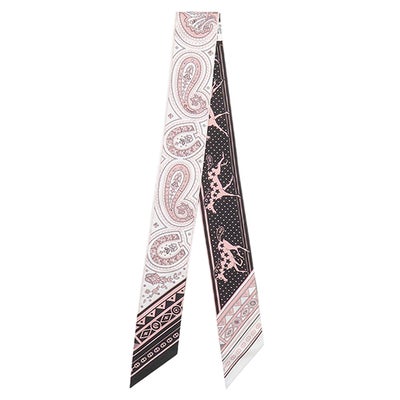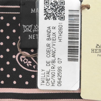 エルメス HERMES スカーフ ツイリー シルク ブラック×ホワイト×ヴューローズ 新品 未使用 【シュヴァル ドゥ クール バンダナ】 【箱】 【中古】