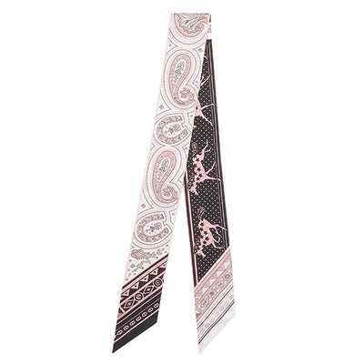 エルメス HERMES スカーフ ツイリー シルク ブラック×ホワイト×ヴューローズ 新品 未使用 【シュヴァル ドゥ クール バンダナ】 【箱】 【中古】