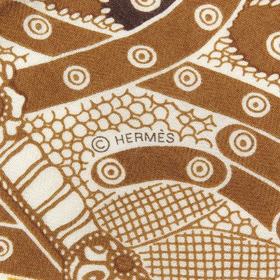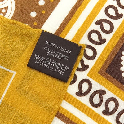 エルメス HERMES ストール カレ140 カレジェアン カシミヤ シルク カリー×キャラメル×ブラン 【SELLE DE DIGNITAIRE/高官の鞍】 【中古】