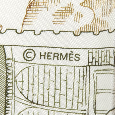エルメス HERMES スカーフ カレ45 シルク ホワイト×フューシャ×カーキ 新品 未使用 【LE PHILATELISTE DU FAUBOURG/フォーブルの切手愛好家】 【箱】 【中古】