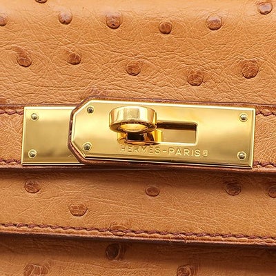 エルメス HERMES 2WAYバッグ ケリー35 内縫い オーストリッチ チェスナッツ ゴールド金具 茶 □I刻印 【保存袋】 【中古】