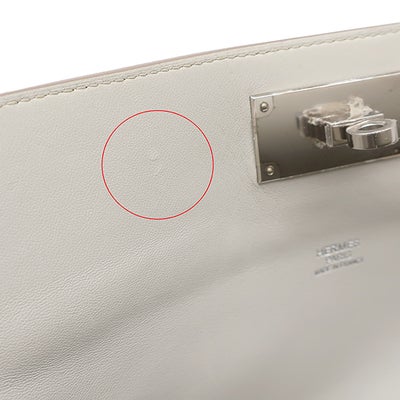 【外側】型崩れやシワ、表面に僅かな薄汚れ、四つ角に擦れや薄汚れ、ステッチにボンド汚れ、コバに僅かなヒビ、ハンドルやショルダー、付属品に擦れや薄汚れ、金具に緩み【内側】擦れや擦れ傷、押し跡【におい】僅かな保管臭【刻印の場所】ポケット内側【保護シール箇所】底鋲(一部剥がれあり)