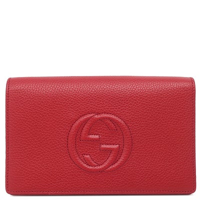 グッチ GUCCI 2WAYバッグ インターロッキングG エンボスステッチ レザー レッド ゴールド金具 クラッチ チェーンショルダー チェーンウォレット 598211 【箱】 【中古】