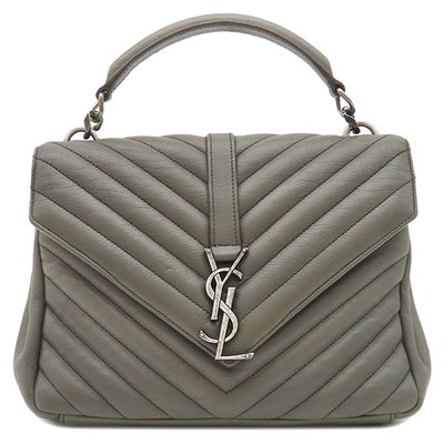サンローラン SAINT LAURENT 2WAYバッグ カレッジ ミディアム レザー グレー シルバー金具 ハンドバッグ ショルダー 428056 【中古】
